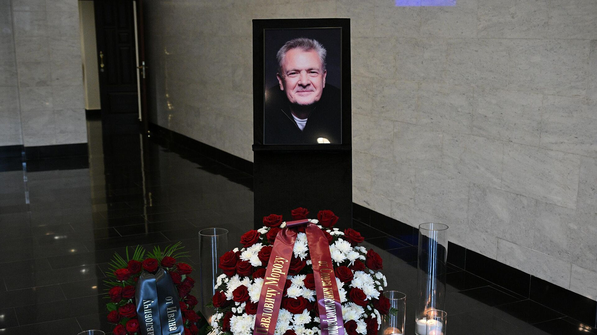 Церемония прощания с известным режиссером и актером Юрием Морозом завершилась в Большом траурном зале Центральной клинической больницы (ЦКБ) №1. Юрий Мороз скончался в возрасте 68 лет ночью в понедельник. Отпевание состоится в храме Воскресения Словущего на Ваганьковском кладбище в 12:30 только для близких и родственников. После церемонии Мороза похоронят на Ваганьковском кладбище. Среди пришедших попрощаться с актером были его жена, актриса Виктория Исакова, и дочь, актриса Дарья Мороз. Также присутствовали генеральный директор "Первого канала" Константин Эрнст с супругой, худрук театра Сатиры и театра на Малой Ордынке Евгений Герасимов, режиссеры Сергей Урсуляк, Ренат Давлетьяров, Джаник Файзиев с супругой - актрисой Светланой Ивановой, а также многие другие известные личности кинематографа и театра. Венки были переданы Союзом кинематографистов России, кинокомпанией "Марс медиа", "Первым каналом", генеральным директором Московского концертного зала "Зарядье" Иваном Рудиным, студией режиссера Валерия Тодоровского и другими организациями. Юрий Мороз родился в 1956 году в городе Краснодоне, окончил Школу-студию МХАТ и режиссерский факультет ВГИКа. Он прославился своими ролями в фильмах и сериалах, таких как "Принцесса Цирка", "Тайна "Черных дроздов"", "Братья Карамазовы" и другие.