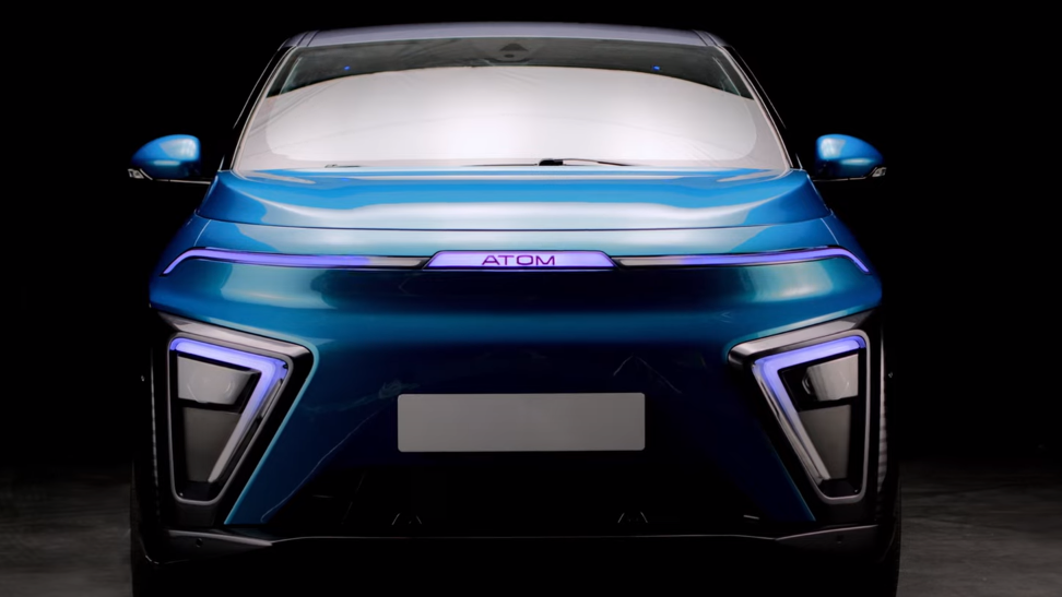 Передние фары "Атома" имеют уникальную V-образную форму и оснащены дневными ходовыми огнями, противотуманными фарами и линзами, объединяющими ближний и дальний свет. На передней панели также расположены габаритные огни и указатели поворота, создавая эффект моноброви. Сзади же можно увидеть аналогичную панель с противотуманными и габаритными огнями, белым фонарем заднего хода и указателями поворота, что делает "Атом" легко узнаваемым на дороге.