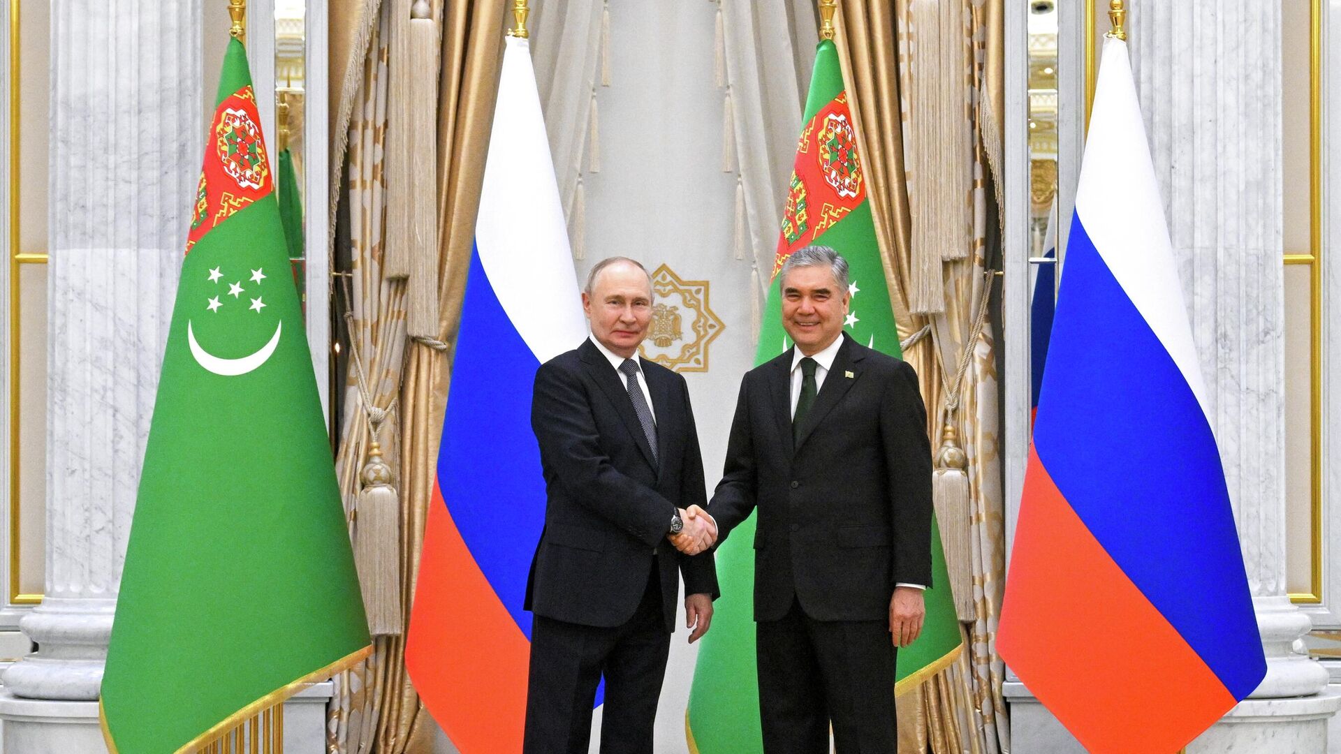 Президент России Владимир Путин на встрече с национальным лидером туркменского народа, председателем Народного совета Туркменистана Гурбангулы Бердымухамедовым отметил, что отношения между Москвой и Ашхабадом активно развиваются, во многом благодаря дружеским связям между руководителями двух стран.