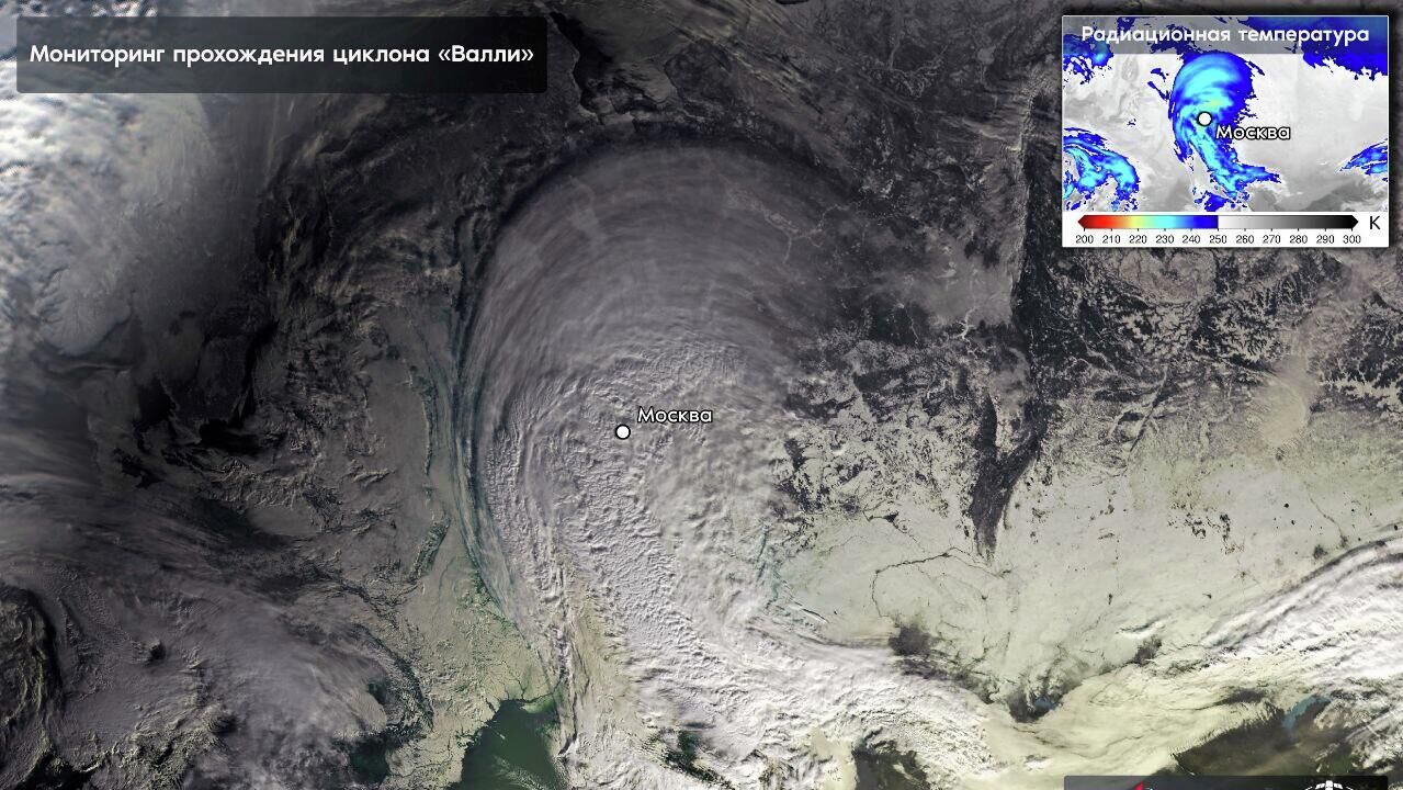 Госкорпорация "Роскосмос" разместила в своем Telegram-канале снимки циклона "Валли", который прошёл над Москвой.