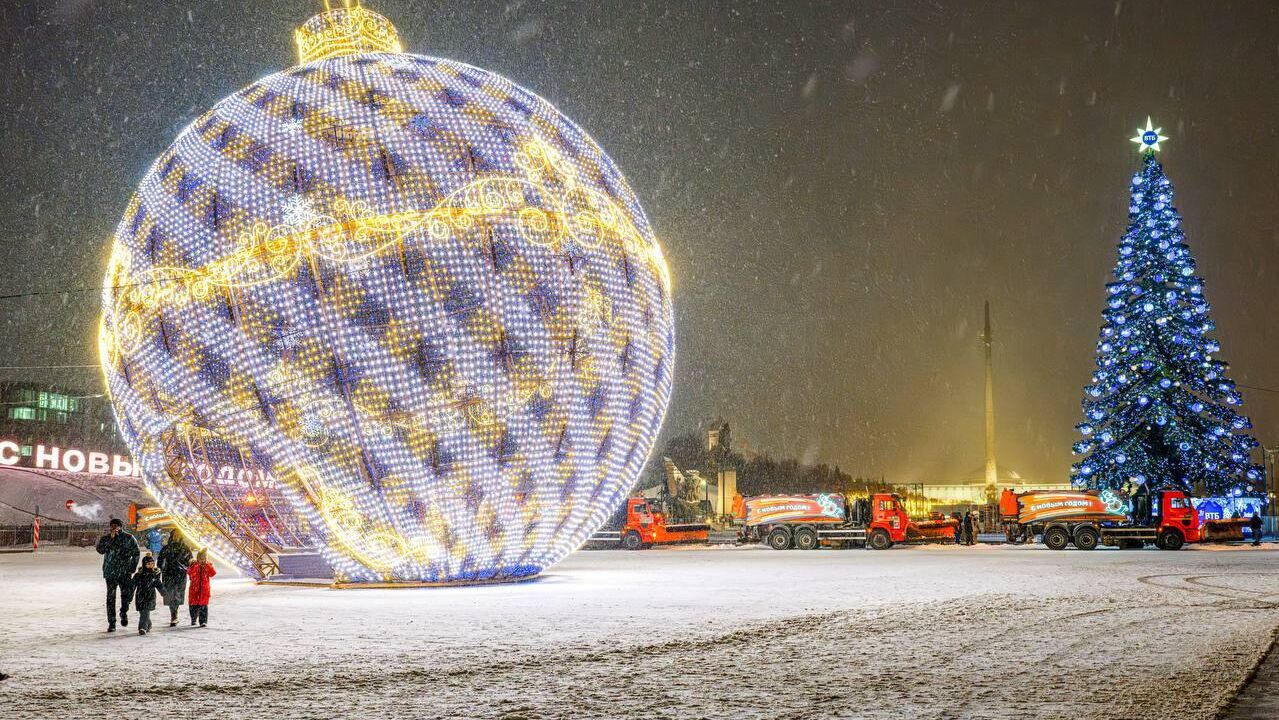 Заместитель мэра отметил внушительные размеры елочного шара: его высота составляет 20 метров, диаметр — 17 метров, а вес — около 35 тонн. Конструкция украшена 176 тысячами светодиодов.