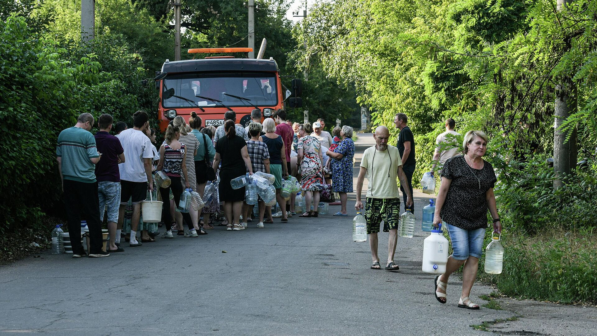 Жители вынуждены экономить как на питьевой, так и на технической воде, перенося ее в дома из точек развоза и ближайших источников. Для помощи с водоснабжением в регионе прибыли укомплектованные техникой аварийные бригады из Москвы. Планируется ускорить запуск водовода из разных водохранилищ, чтобы обеспечить дополнительные объемы воды для городов Донецк и Макеевка.