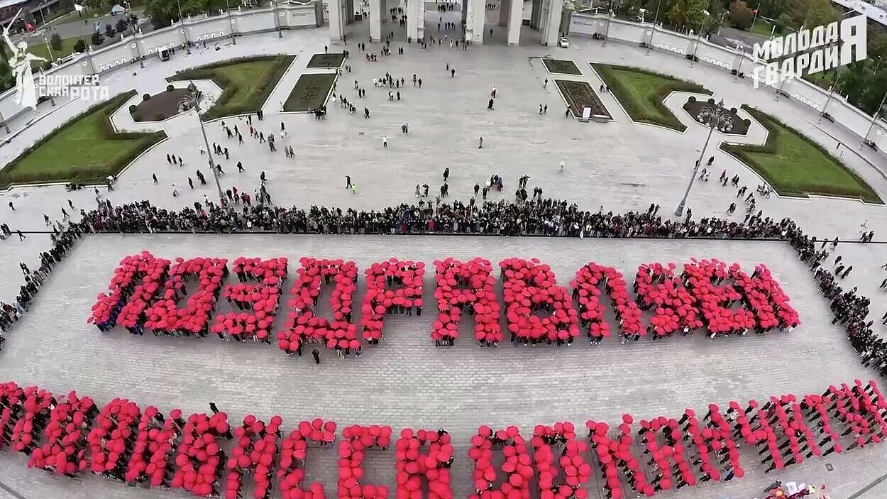 Они выстроились в фразу "Поздравляем от Донбасса до Камчатки" и провели серию акций по всей стране. Активисты держали 89 флагов регионов России, символизируя единство страны. Руководители организации выразили признательность Путину за его стратегические решения и поддержку молодежи.