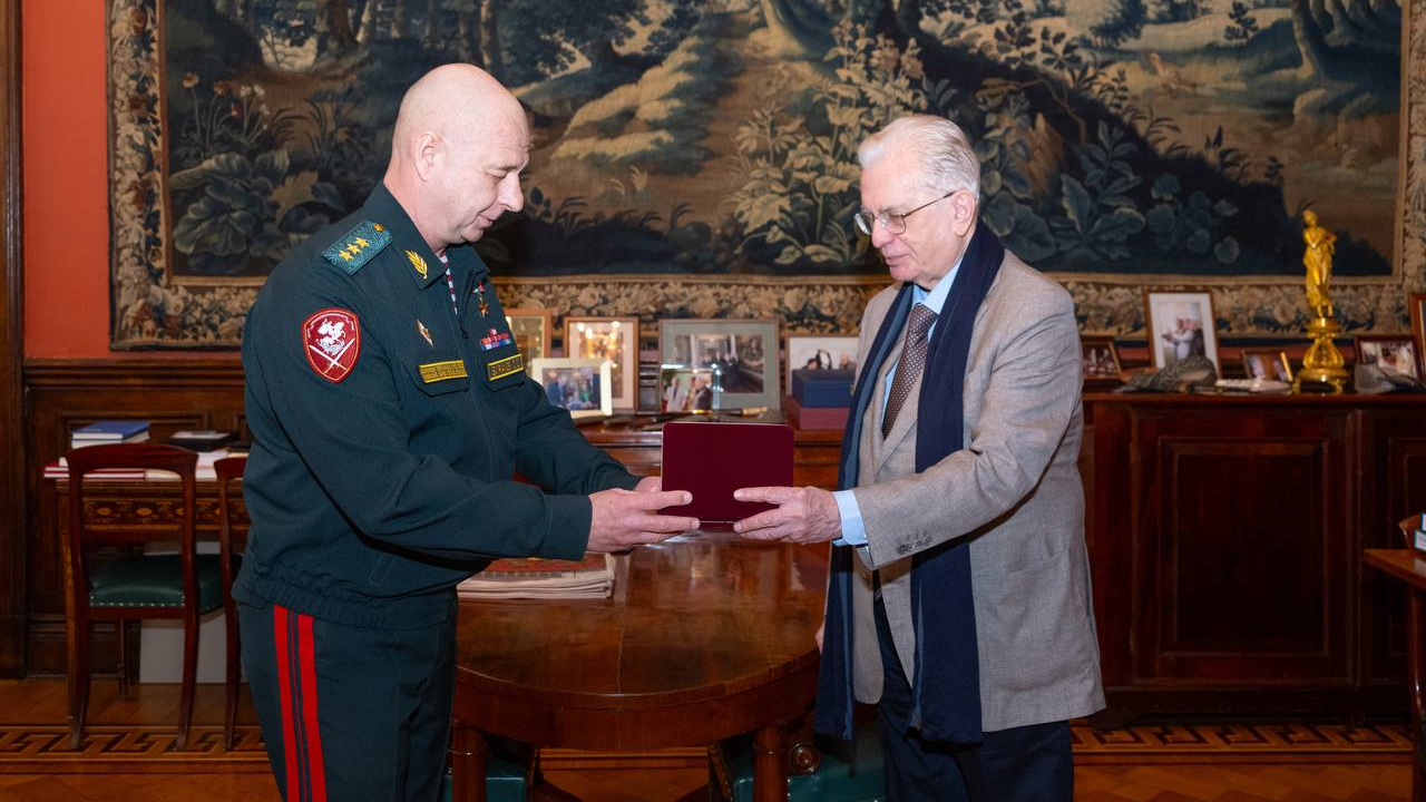 Награду вручил командующий Северо-Западным округом Росгвардии Сергей Бураков по поручению главнокомандующего войсками национальной гвардии РФ Виктора Золотова. Пиотровский выразил благодарность за сотрудничество и подчеркнул важность взаимодействия между Государственным Эрмитажем и Росгвардией. Сотрудничество между учреждениями включает проведение совместных учений, церемоний награждения и участие в культурно-патриотических мероприятиях.