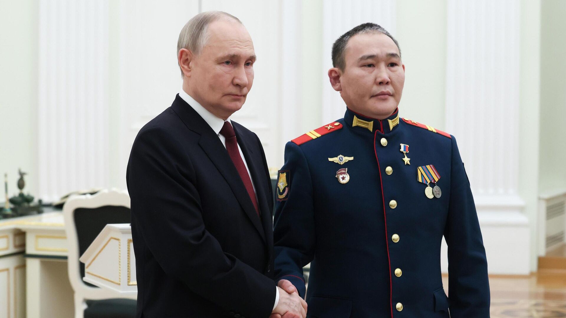 Программа для участников спецоперации "Якутия - Земля Героев" начнется 21 февраля, а с июня начнется обучение первых бойцов. "Мне предложили присоединиться к кадровой программе для участников СВО. Я собираюсь учиться", - сказал Григорьев журналистам. Глава Якутии Айсен Николаев вручил ему сертификат на 1,5 миллиона рублей, а "Тута" в свою очередь подарил Николаеву якутский нож. Президент России Владимир Путин в январе присвоил Григорьеву звание Героя России, а 23 февраля в Кремле вручил ему медаль "Золотая Звезда". В начале января в социальных сетях появилось видео, снятое с нательной камеры украинского военного, где он сражается с российским штурмовиком, который в итоге побеждает. На видео запечатлены последние моменты жизни украинца, который просит российского бойца оставить его в покое. Штурмовик из Якутии выполняет его просьбу. Инцидент произошел в районе села Трудовое в Донецкой Народной Республике.