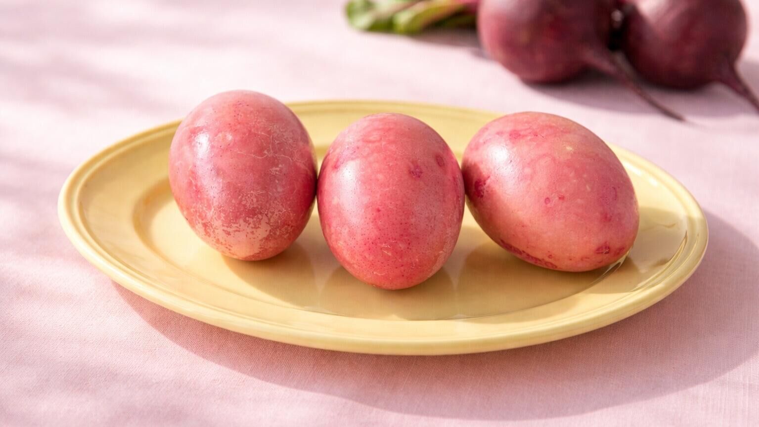 Свекла содержит природный пигмент бетанин, отвечающий за насыщенный красно-розовый цвет. Именно этот натуральный краситель проникает в скорлупу и придает яйцам привлекательный и стойкий оттенок, который может варьироваться от нежно-розового до глубокого бордового в зависимости от концентрации раствора и времени выдержки.
