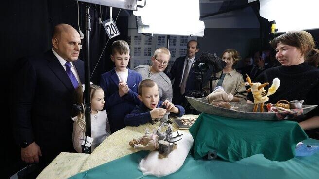 В ходе всероссийской акции "Елка желаний" премьер-министр Российской Федерации Михаил Мишустин осуществил мечты четырех детей, устроив для них экскурсию на студию "Союзмультфильм".