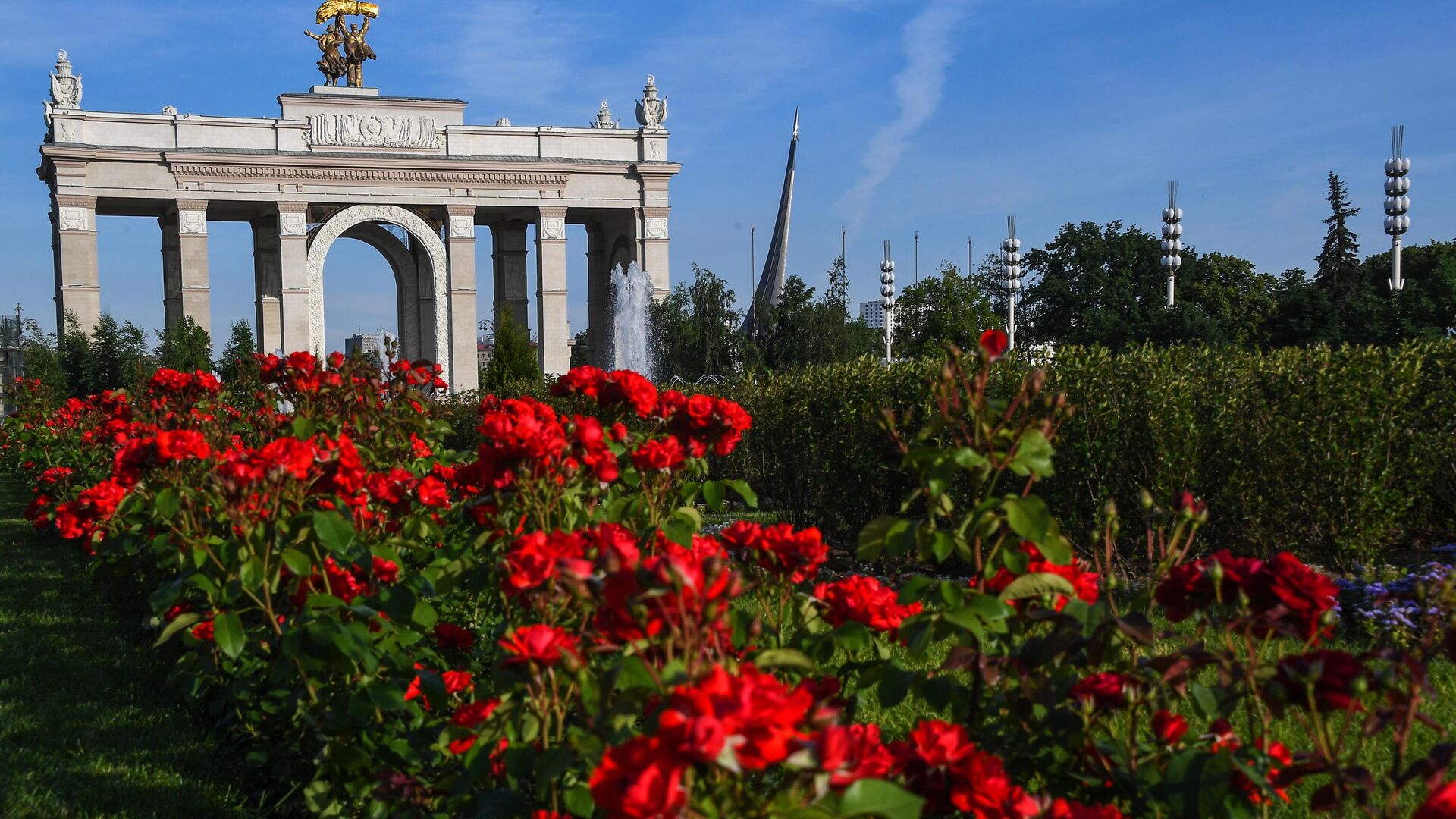 Московские школьники на городском выпускном на ВДНХ исполнили гимн Российской Федерации.