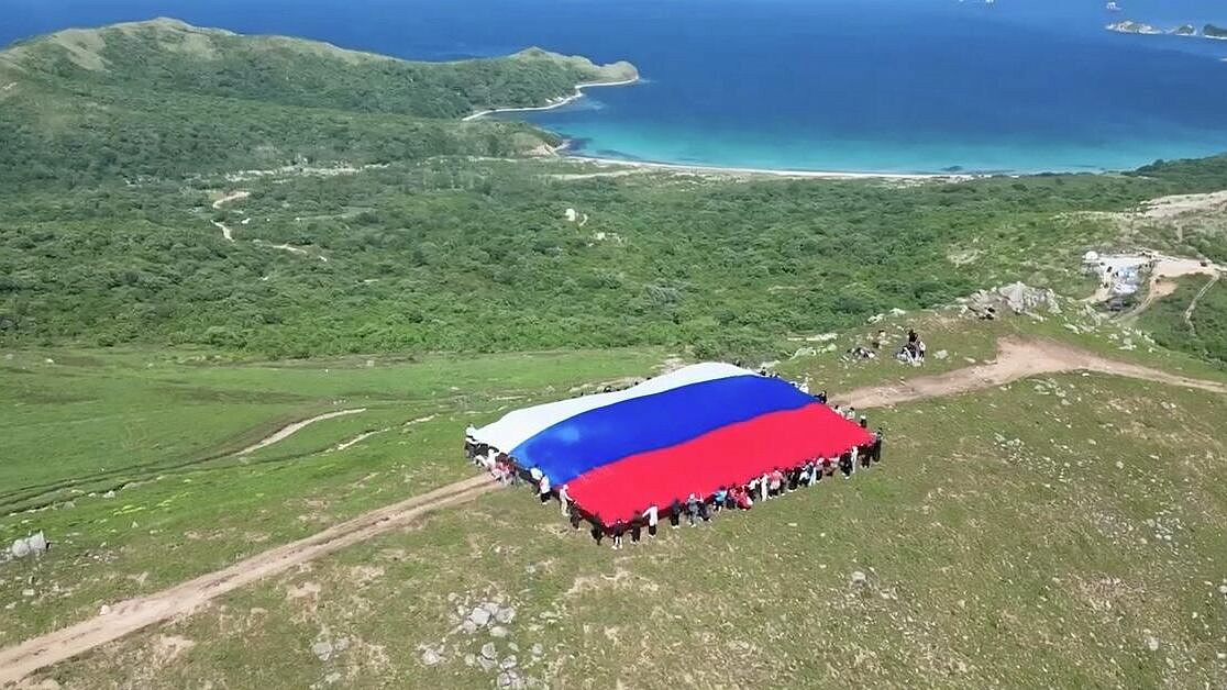 На полуострове Гамова в Приморье развернули огромный флаг России