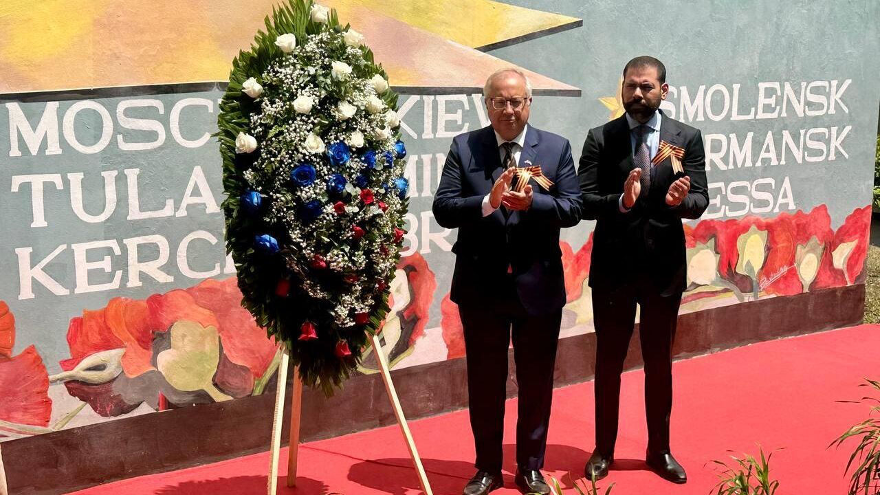 Участники церемонии возложили венки к настенному панно "Города-герои Великой Отечественной войны", созданному по инициативе Русского дома. Это панно стало постоянным местом памяти и встреч в Манагуа по случаю ключевых дат российской истории.