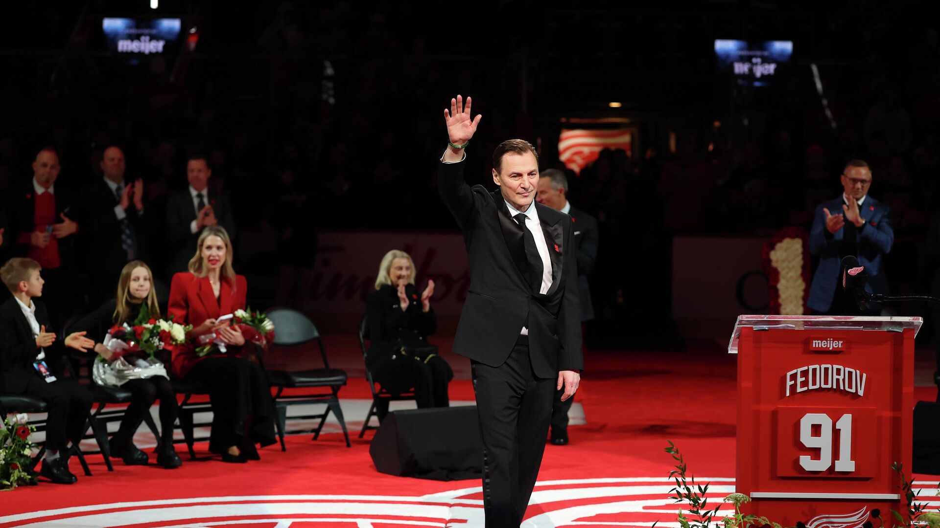 Мероприятие прошло перед матчем регулярного чемпионата НХЛ между "Детройт Ред Уингз" и "Каролина Харрикейнз" на домашней арене "Ред Уингз". В честь Федорова под своды арены был поднят именной стяг, символизирующий признание и уважение клуба и болельщиков к его заслугам. В этот памятный день с видеопоздравлениями выступили известные хоккеисты, тесно связанные с Федоровым по совместной игре и достижениям: нападающий "Вашингтон Кэпиталз" Александр Овечкин, а также обладатели Кубка Стэнли в составе "Детройт Ред Уингз" Владимир Константинов и Игорь Ларионов. Их слова стали ярким подтверждением значимости Федорова для хоккейного сообщества.Сергей Федоров, член Зала хоккейной славы, оставил неизгладимый след в истории НХЛ и российского хоккея. Его мастерство, упорство и командный дух вдохновляли не одно поколение игроков и болельщиков. Выведение из обращения его номера — это не просто дань уважения, а символ вечного признания его выдающегося вклада в спорт. Такие моменты напоминают о том, как важны традиции и память в мире профессионального хоккея, объединяя прошлое и настоящее.Хоккейная карьера Сергея Федорова — это пример выдающегося таланта и упорства, который навсегда оставил след в истории НХЛ и мирового хоккея. Его достижения вызывают восхищение не только у болельщиков, но и у легендарных игроков, которые были рядом с ним на льду. «Поздравляю, Федоров!» — с искренним уважением произнёс Владимир Константинов, подчеркивая значимость момента. «Было большой честью играть вместе с тобой, выигрывать Кубки Стэнли. Ты заслужил этого!» — добавил Игорь Ларионов, один из его близких товарищей по знаменитой «Русской пятерке». Этот уникальный состав, включавший также Вячеслава Козлова и Вячеслава Фетисова, стал символом эпохи в клубе «Детройт» в 90-х годах.Сергей Федоров — член Зала хоккейной славы в Торонто, что подтверждает его выдающийся вклад в развитие хоккея. За время выступлений за «Детройт» с 1990 по 2003 год он провёл 908 матчей в регулярных чемпионатах НХЛ, набрав впечатляющие 954 очка (400 голов и 554 передачи). Этот результат занимает шестое место в истории клуба, что говорит о его стабильности и высокой результативности. В плей-офф Федоров сыграл 162 игры, где набрал 163 очка (50 голов и 113 передач), что является третьим лучшим показателем в истории «Детройта». Его вклад был ключевым в завоевании нескольких Кубков Стэнли, и его имя навсегда вписано в историю клуба и мирового хоккея.Таким образом, карьера Сергея Федорова — это не просто статистика, а история о преданности спорту, командному духу и мастерстве, которые вдохновляют новое поколение хоккеистов и болельщиков по всему миру.Сергей Федоров — одна из самых ярких и значимых фигур в истории российского хоккея и НХЛ, чей вклад в развитие этого вида спорта трудно переоценить. В составе клуба "Детройт Ред Уингз" он достиг выдающихся успехов, выиграв три Кубка Стэнли, что стало важной вехой как для него лично, так и для всей команды. После завершения своей эпохи в "Ред Уингз" Федоров продолжил карьеру в Национальной хоккейной лиге, выступая за такие команды, как "Анахайм Майти Дакс" и "Коламбус Блю Джекетс". В 2008 и 2009 годах он играл за "Вашингтон Кэпиталз", где имел честь выступать вместе с одним из лучших нападающих современности — Александром Овечкиным, что стало интересным этапом в его 