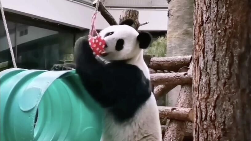 Панде Катюше из Московского зоопарка подарили клатч в виде сердца