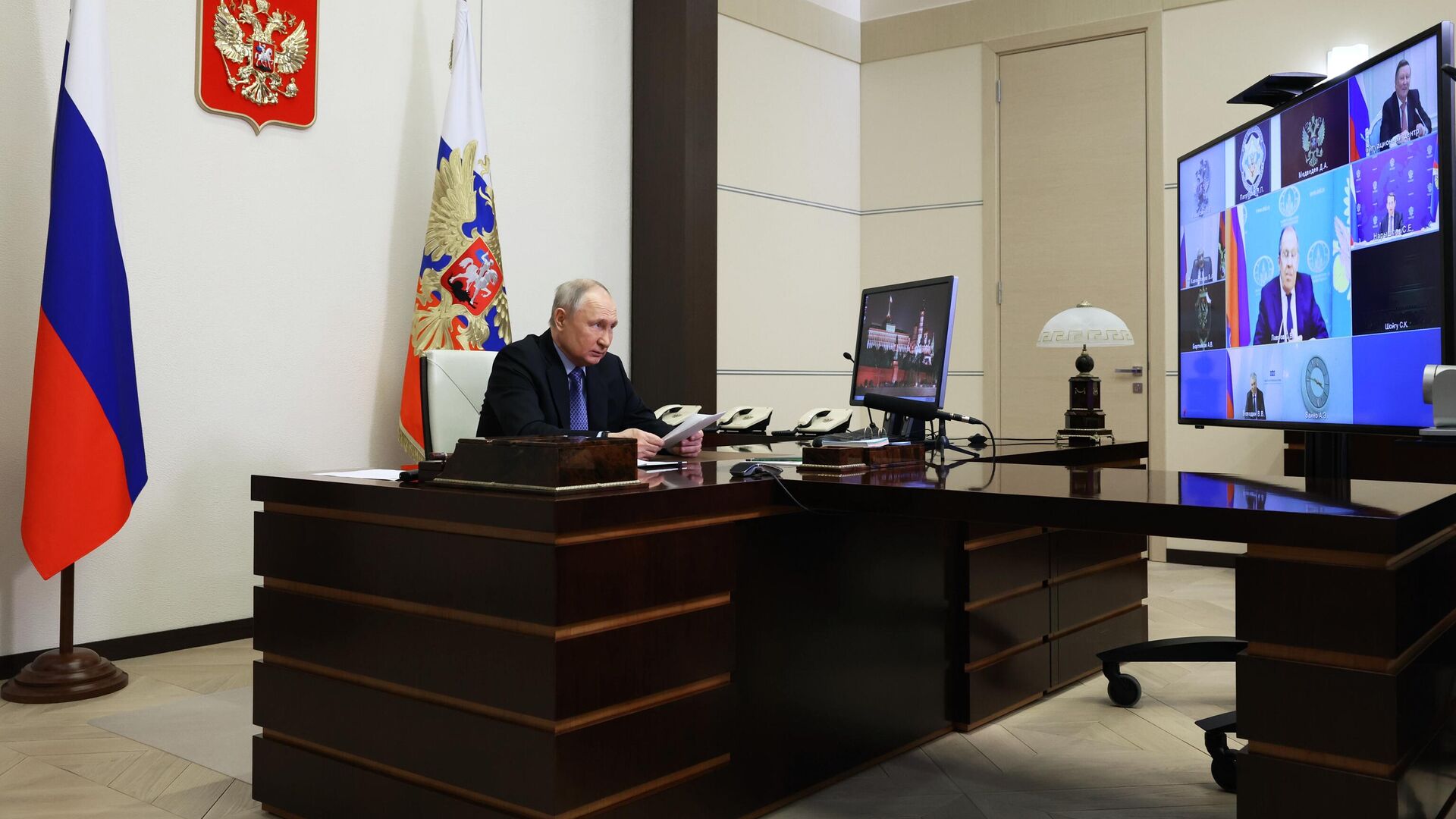 Путин на встрече с членами Совбеза предложил обсудить меры по противодействию распространению идей неонацизма.Источник и фото - ria.ru.