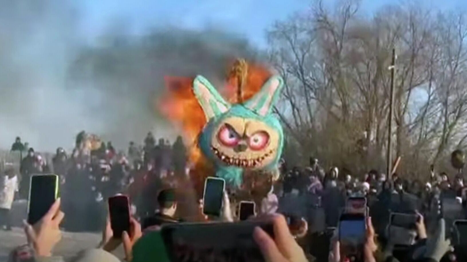 В Липецкой области на Масленицу сожгли чучело Лабубу