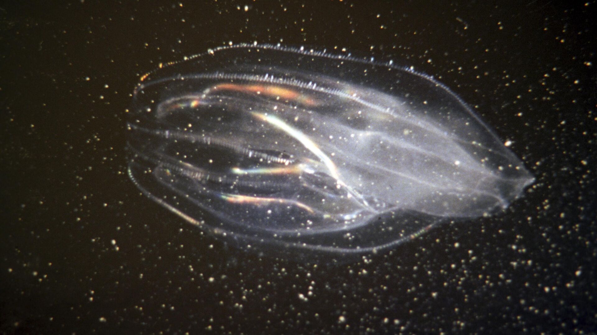 Гребневики - это морские животные, напоминающие медуз, но с гребными пластинками, которые мерцают всеми цветами радуги при движении. В отличие от медуз, гребневики используют реснички для передвижения, также они являются хищниками, питающимися планктоном и личинками рыб.