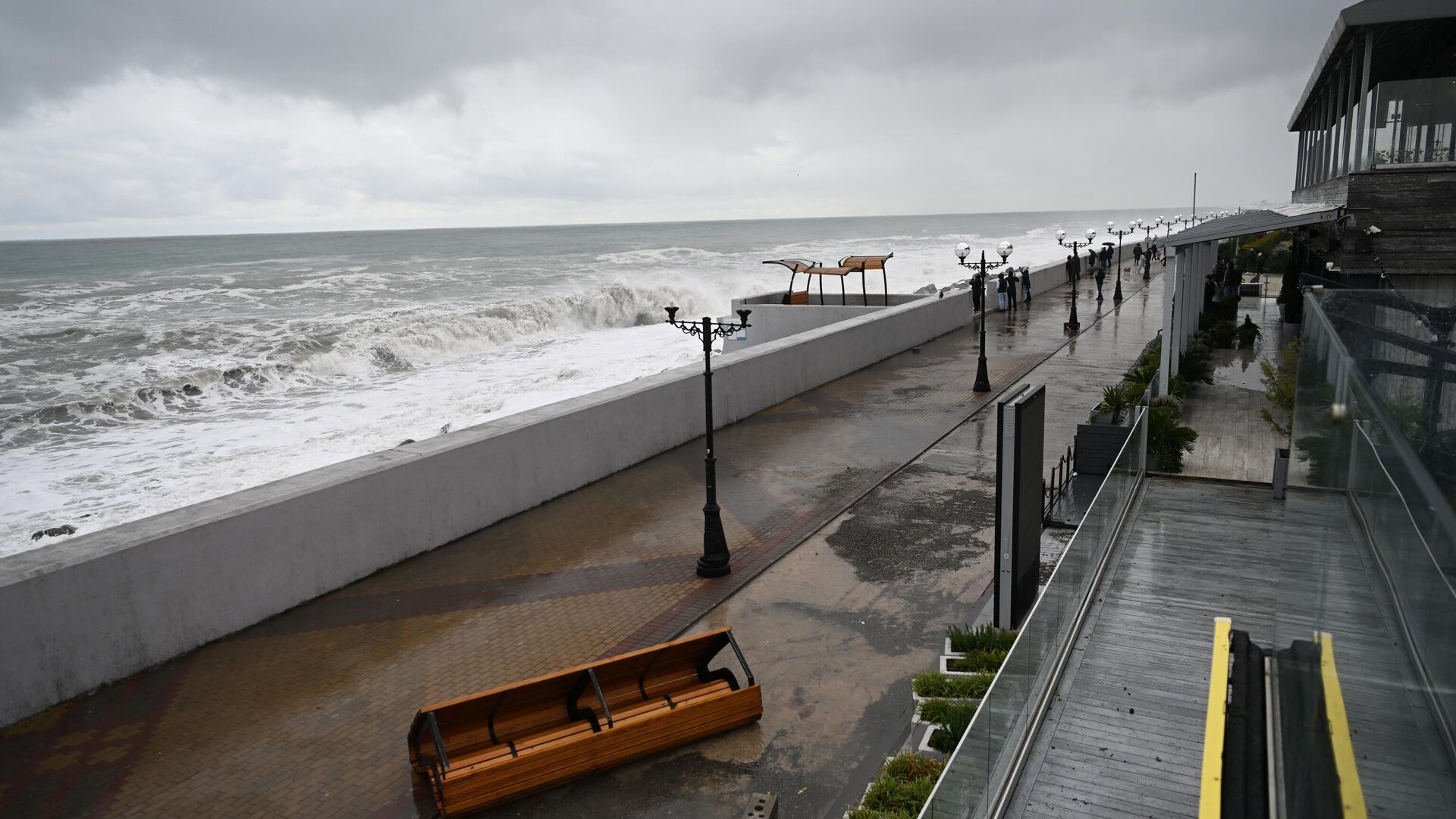 «До конца суток 8 января и в течение 9 января на территории Сочи и ФТ Сириус прогнозируется комплекс неблагоприятных погодных явлений. Ожидается усиление ветра до 20 м/с, сильные дожди с грозами в прибрежных и предгорных районах. С вечера 8 января и в течение 9 января море будет штормить с волнением 4-5 баллов, высота волн составит от 1,3 до 2,5 метров», — говорится в сообщении.