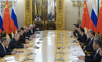 В Кремле продолжаются переговоры между президентом России Владимиром Путиным и председателем Китая Си Цзиньпином в расширенном составе с участием делегаций.