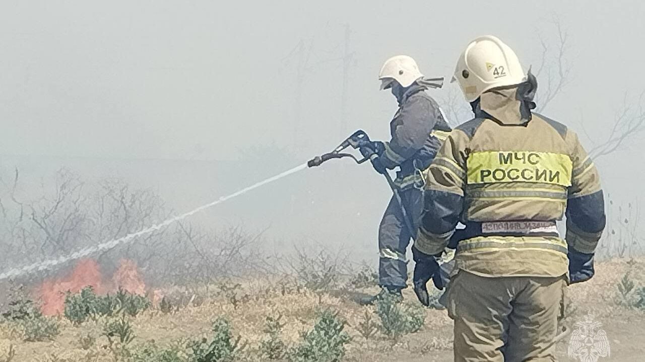 Фронт пожара в садовом товариществе под Астраханью увеличился