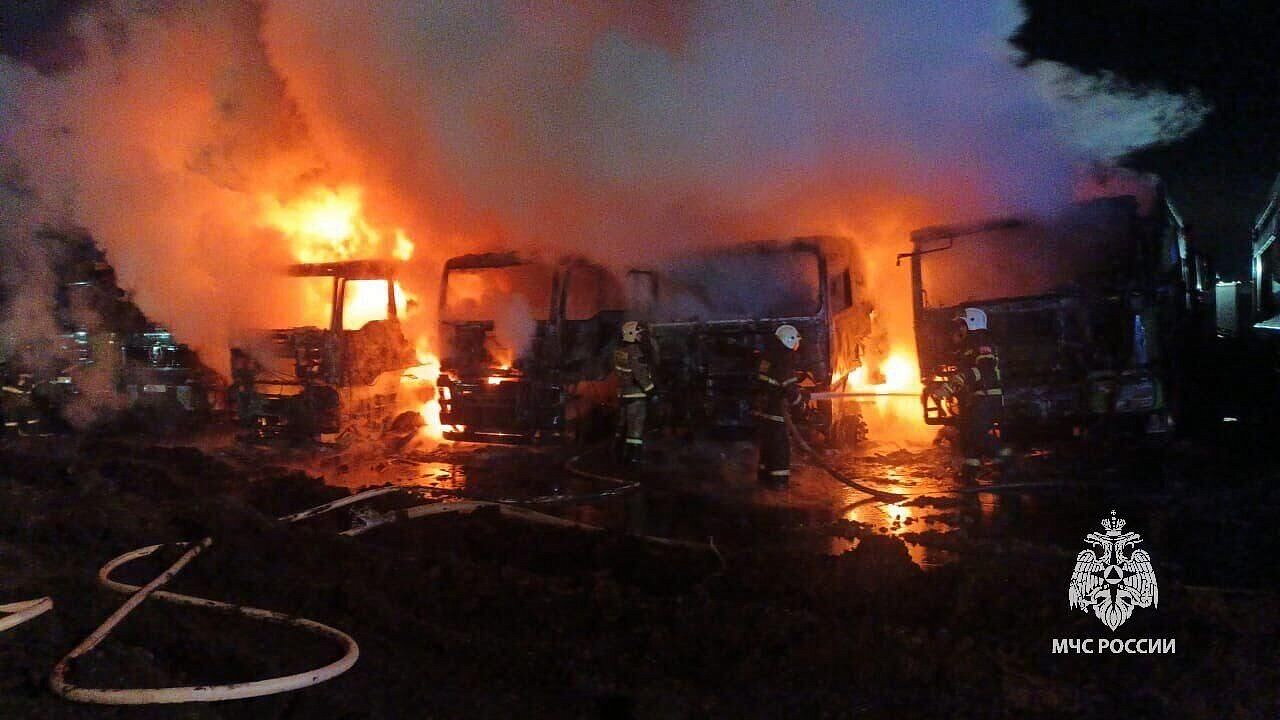 На автостоянке под Уфой ночью сгорели шесть грузовиков