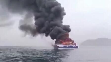 Туристы находились на катамаране, который загорелся у берегов Владивостока.