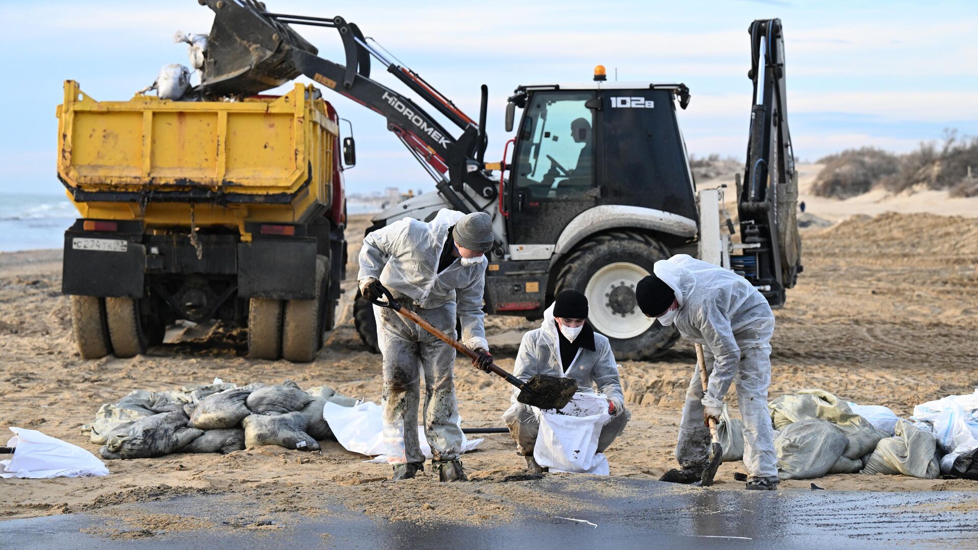 "В настоящее время наблюдается снижение интенсивности выбросов нефтепродуктов на берег. Мы установили защитный вал вдоль побережья, покрытый специальными сетями, чтобы сохранить наши пляжи. Это простой, но эффективный метод. Абсорбирующая ткань поглощает все мелкие фракции мазута, которые сейчас находятся в море", – отметил Кондратьев.