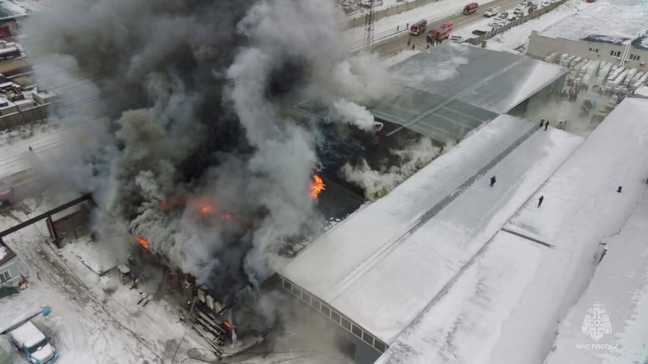 Площадь пожара на складе в Барнауле выросла в два раза