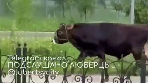В центре Люберец появился огромный бесхозный бык, который бегает по улицам.