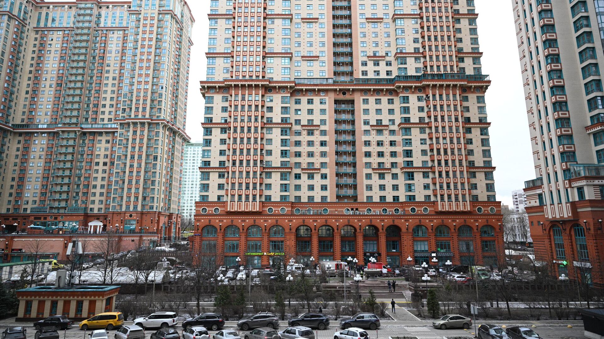 На месте происшествия остаются несколько автомобилей экстренных служб: скорой помощи, полиции и пожарная машина. Утром в понедельник произошел взрыв в подъезде высотки в ЖК "Алые паруса" на Авиационной улице. По данным столичного главка СК РФ, один человек погиб, еще четверо получили ранения различной степени тяжести, один из которых позже скончался в больнице – это, по информации правоохранительных органов, был основатель добровольческого батальона в ДНР Армен Саркисян. Уголовное дело расследуется по статьям об убийстве общеопасным способом, покушении на убийство двух и более лиц и незаконном обороте оружия.
