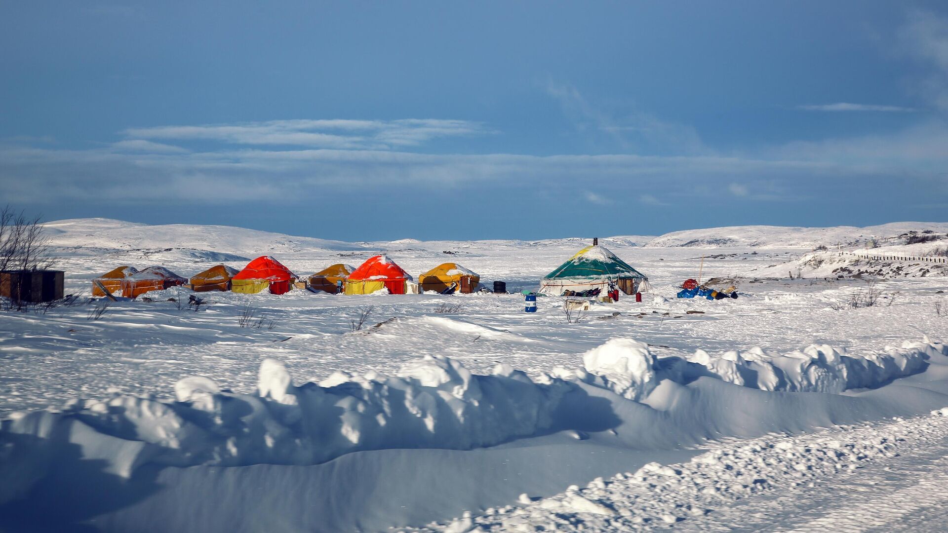 Териберка — популярное туристическое село, куда приезжают, чтобы увидеть «танцы» китов и северное сияние. Однако зимой дорогу к Териберке, расположенной в 120 километрах от Мурманска, часто заносит снегом, и ее закрывают для движения, из-за чего туристы нередко остаются заблокированными в селе.