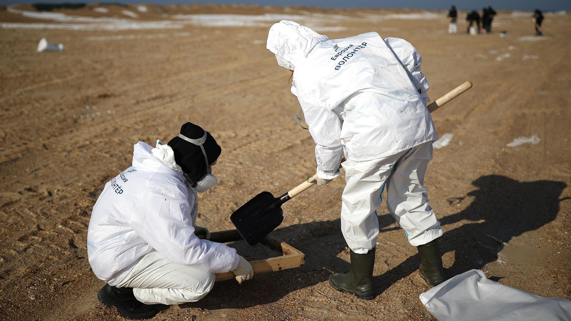 С начала работы 23 октября восстанавливают защитный вал для предотвращения выбросов нефтепродуктов в период осенне-зимних штормов. Построено уже 15 километров защитного вала вдоль берега. Сообщается о обнаружении фрагментов мазута с водорослями у пансионата "Малахит" и гостиницы "Жара" в станице Благовещенской, а также о свежих выбросах на Бугазской косе. На данный момент пятен нефтепродуктов в морской акватории не обнаружено. Для борьбы с последствиями чрезвычайной ситуации задействовано около 500 человек и 56 единиц техники. В декабре 2024 года в районе Керченского пролива произошло крушение танкеров "Волгонефть-212" и "Волгонефть-239" во время шторма, что привело к выбросу около 2,4 тысяч тонн нефтепродуктов и загрязнению черноморского побережья Краснодарского края.