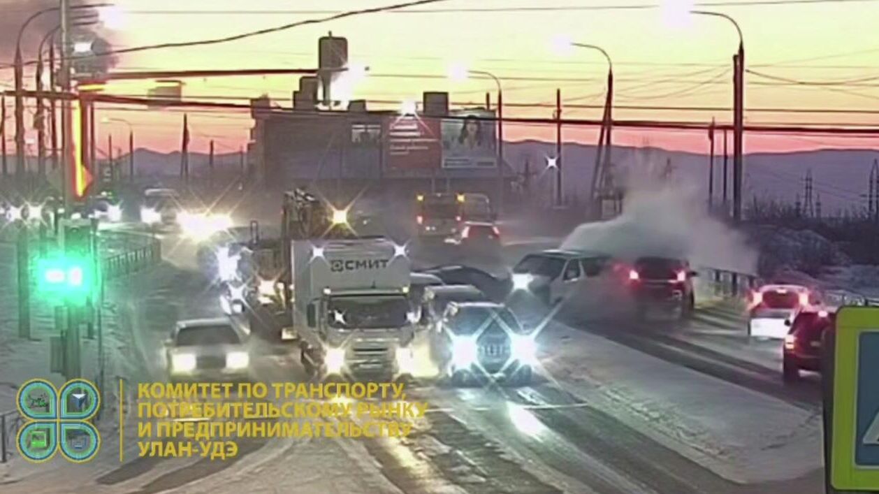 «Предварительно установлено, что сегодня на перекрестке улиц Бабушкина и Ринчино в результате столкновения повреждены шесть автомобилей, пострадали два человека», — говорится в сообщении.