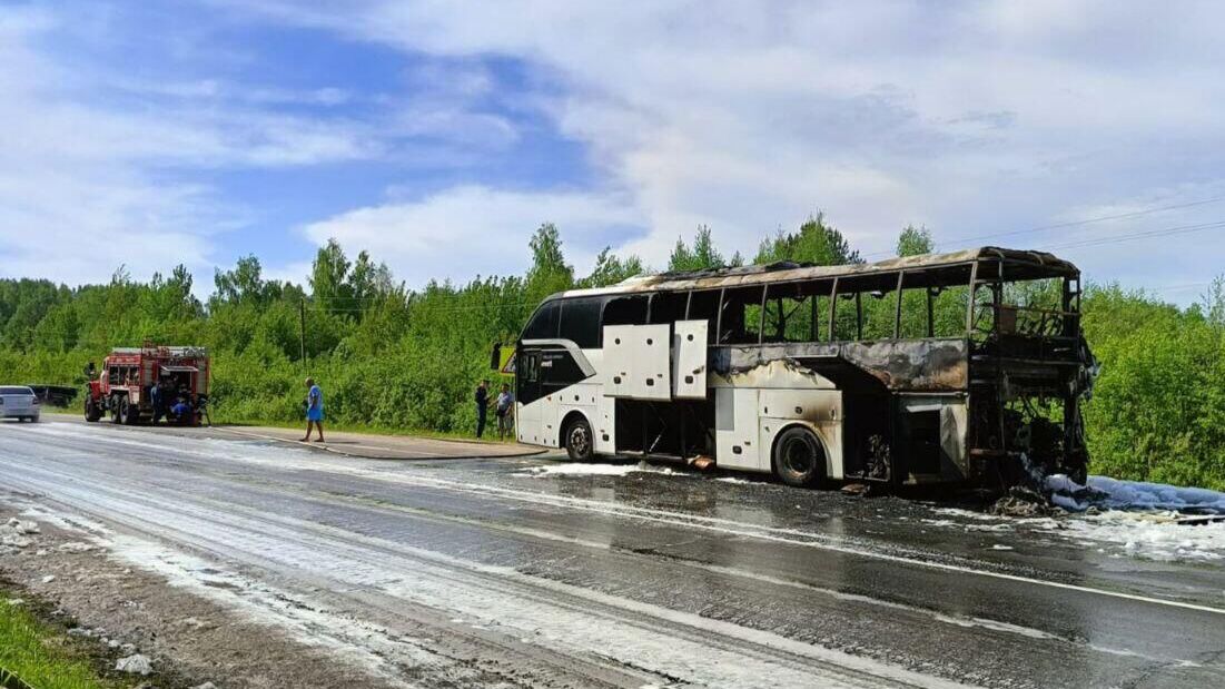 В Костромской области сгорел автобус, перевозивший детей в санаторий