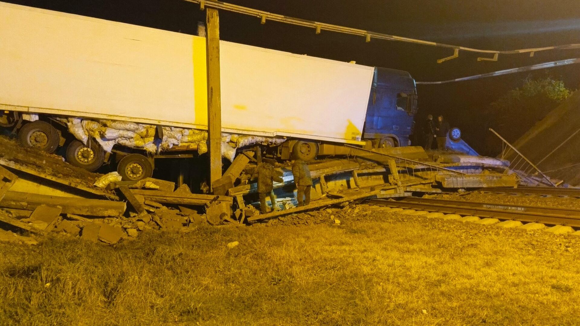 Автомобильный мост, проходивший над железнодорожным путем, обрушился между селами Изумрудное и Маслово. В результате инцидента два человека пострадали. По данным Следственного комитета Российской Федерации, мост обрушился под грузом фуры. В настоящее время проводится проверка. После устранения завалов поезда возобновили движение на данном участке. Сожалеем сообщить, что мужчина, получивший тяжелые травмы в результате происшествия, скончался в медицинском учреждении, несмотря на предоставленную ему медицинскую помощь. Второму пострадавшему была оказана амбулаторная помощь.