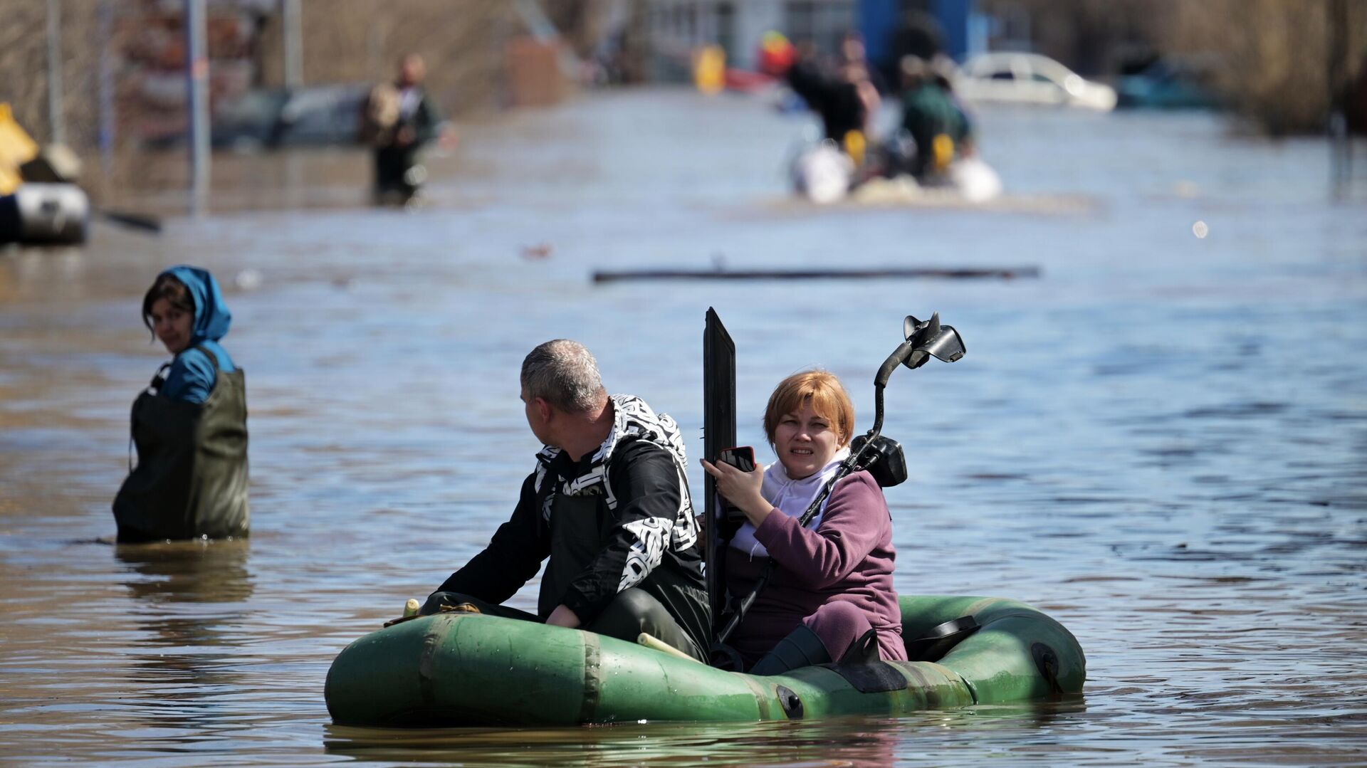 В связи с наводнением на улице Донгузской в Оренбурге въезд закрыт с обеих сторон, разрешено движение только автомобилей МЧС и прицепов с лодками.