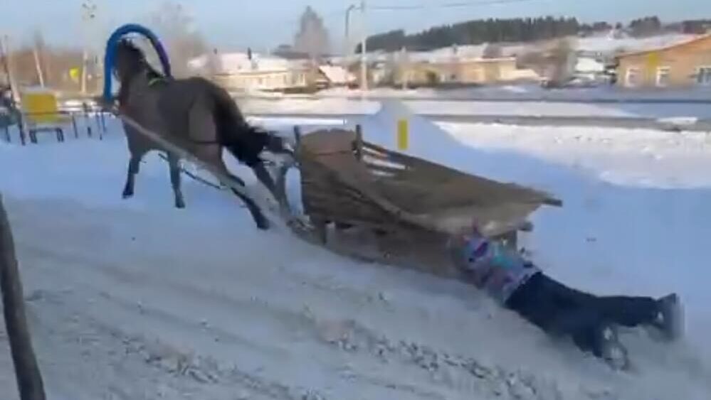 Ранее в нескольких социальных сетях появилось видео, на котором лошадь протащила ребенка по снегу во время катания на повозках. Малыш зацепился за сани и ехал животом по снегу на высокой скорости, пока животное продолжало движение. Сообщалось, что инцидент произошел в Пермском крае.