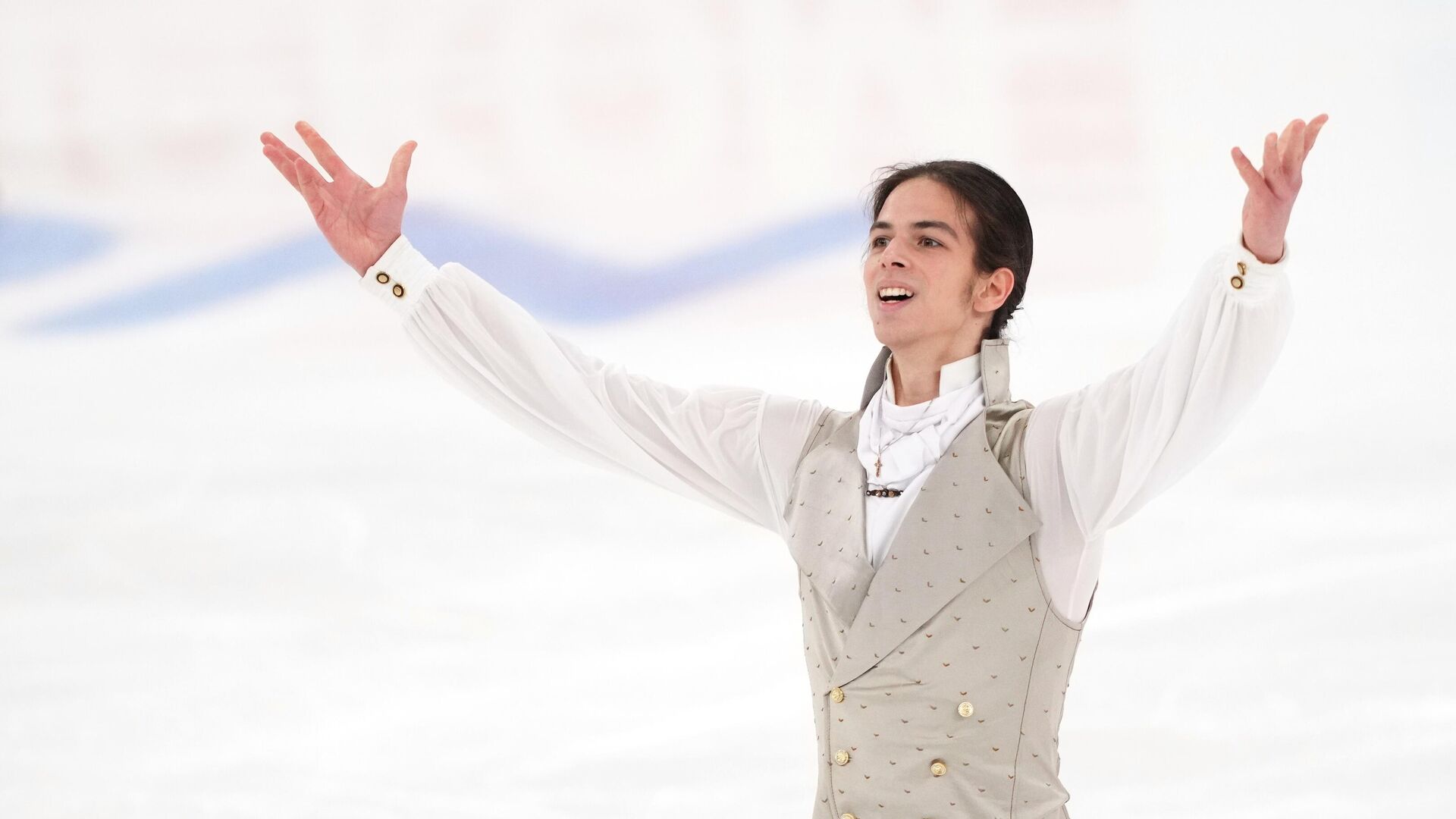Привлечённые русскоязычными призывами, к группе болельщиц присоединяются другие соотечественники, поддерживающие фигуриста.