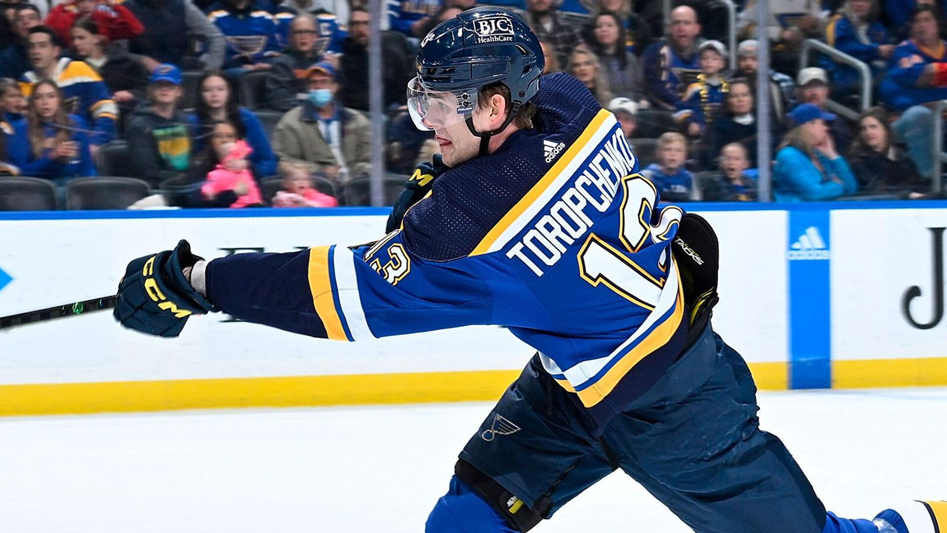Алексею Торопченко 26 лет. Он был выбран «Блюз» в четвертом раунде драфта НХЛ 2017 года. За время выступлений в составе команды москвич провел 286 матчей в регулярном сезоне, набрав 65 очков (32 гола и 33 передачи). В плей-офф он сыграл 19 встреч, заработав 6 очков (2 гола и 4 передачи) при показателе полезности "+9". В нынешнем сезоне на его счету 5 результативных баллов (2 гола и 3 передачи) в 27 матчах.