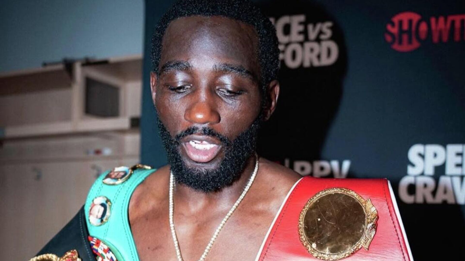 Теренсу Кроуфорду 38 лет. В сентябре он одержал победу над мексиканцем Саулем Альваресом единогласным решением судей, завоевав все чемпионские пояса во втором среднем весе. Этот бой стал для него дебютным в новой весовой категории. Всего на его счету 42 поединка, все из которых он выиграл, 31 – нокаутом. Ранее Кроуфорд был абсолютным чемпионом мира в первом полусреднем (2017) и полусреднем (2023) весах. Кроме того, он стал первым боксёром в истории, завоевавшим абсолютные чемпионские титулы в трёх весовых категориях в эпоху «четырёх поясов».