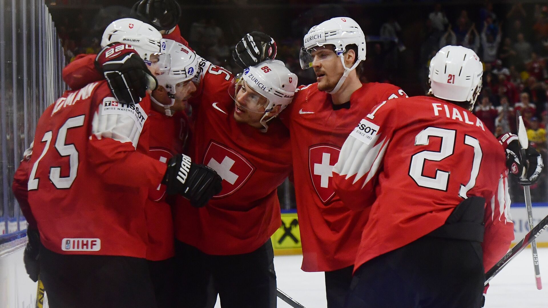 Матч группы А, прошедший в Милане, завершился со счетом 4:0 (периоды: 2:0, 0:0, 2:0). Два гола на счету Тимо Майера (на 51-й и 57-й минутах), также отличились Дамьен Риат (1-я минута) и Янис Мозер (4-я минута). Вратарь швейцарской команды Леонардо Дженони отразил все 27 бросков по своим воротам, оформив «шатаут».