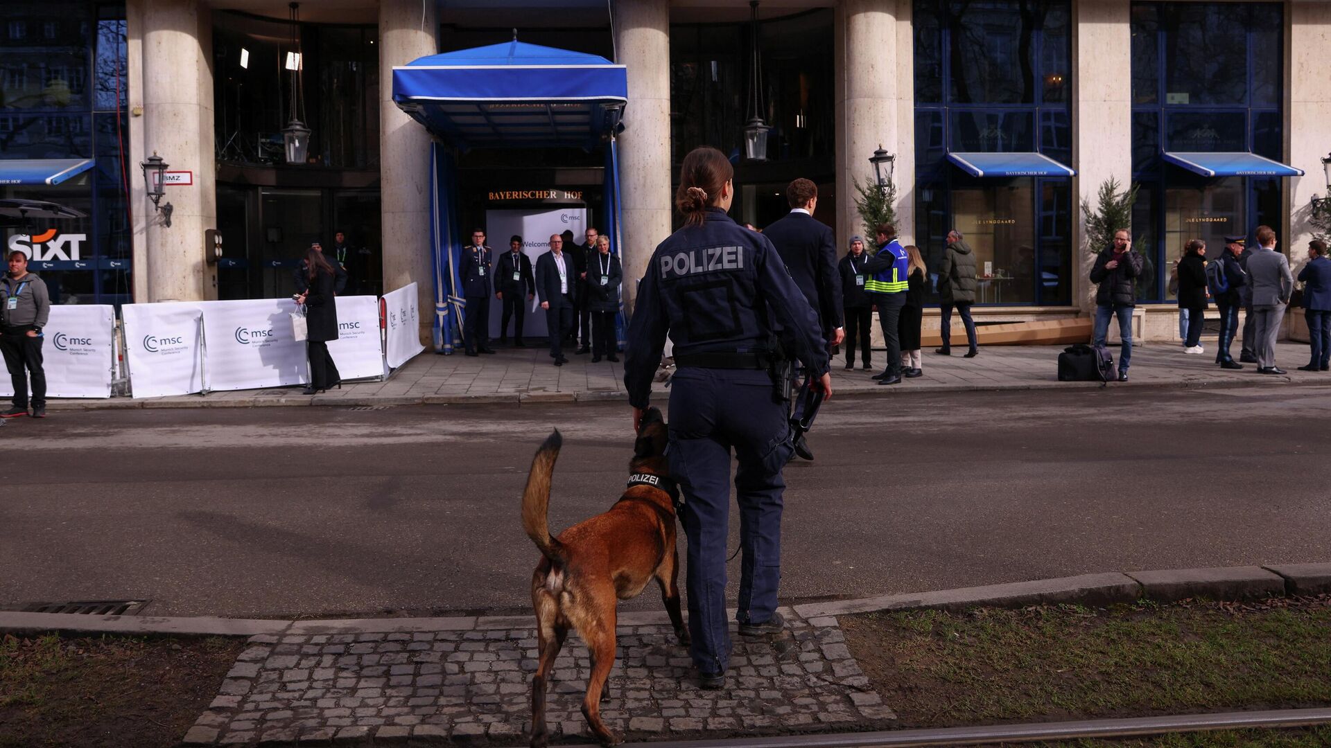В преддверии масштабных субботних протестов жительница Мюнхена провела у КПП Мюнхенской конференции по безопасности акцию против поставок оружия на Украину и в поддержку мира с Россией, сообщает корреспондент РИА Новости с места событий.