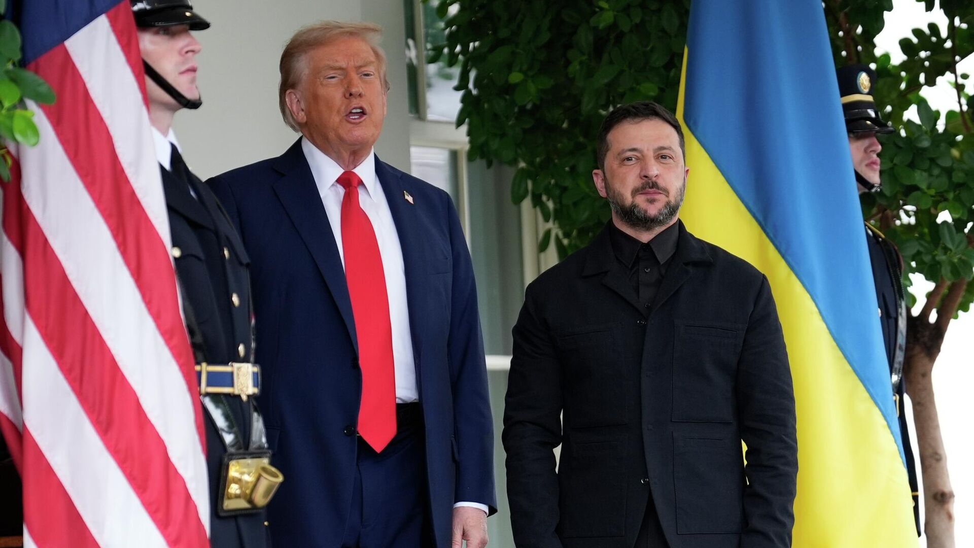 Журналист отметил: "Хочу отметить, что вы выглядите прекрасно в этом костюме", обращаясь к Зеленскому перед заданием вопроса. Трамп подтвердил свои слова, добавив, что он уже высказал подобное мнение ранее, на что Зеленский улыбнулся. После предыдущей встречи с Трампом в Белом доме Зеленского критиковали за выбор милитари-стиля на официальном мероприятии.
