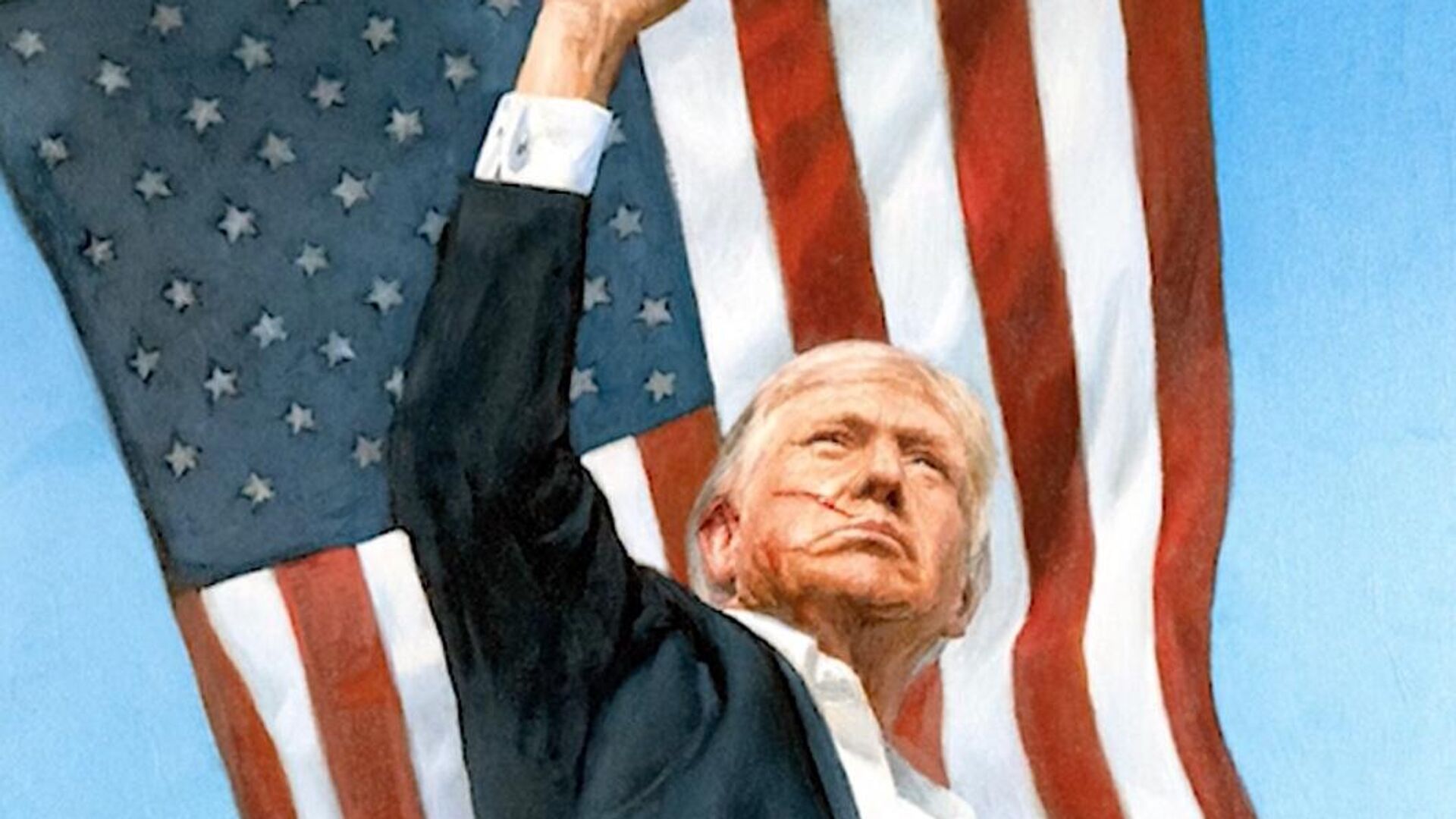На картине изображен Трамп после попытки покушения, автором подарка стал народный художник России Никас Сафронов. На фоне видны Статуя Свободы и район Манхэттен Нью-Йорка, а за спиной президента развевается американский флаг. Сафронов отметил, что портрет может способствовать улучшению отношений между Россией и США, поэтому не взял за работу деньги. Президент Путин назвал портрет важным шагом в улучшении отношений между двумя странами. Спецпосланник президента США Стивен Уиткофф сообщил о передаче портрета, а пресс-секретарь президента Дмитрий Песков отметил, что подарок личный и дополнительной информации не будет предоставлено.