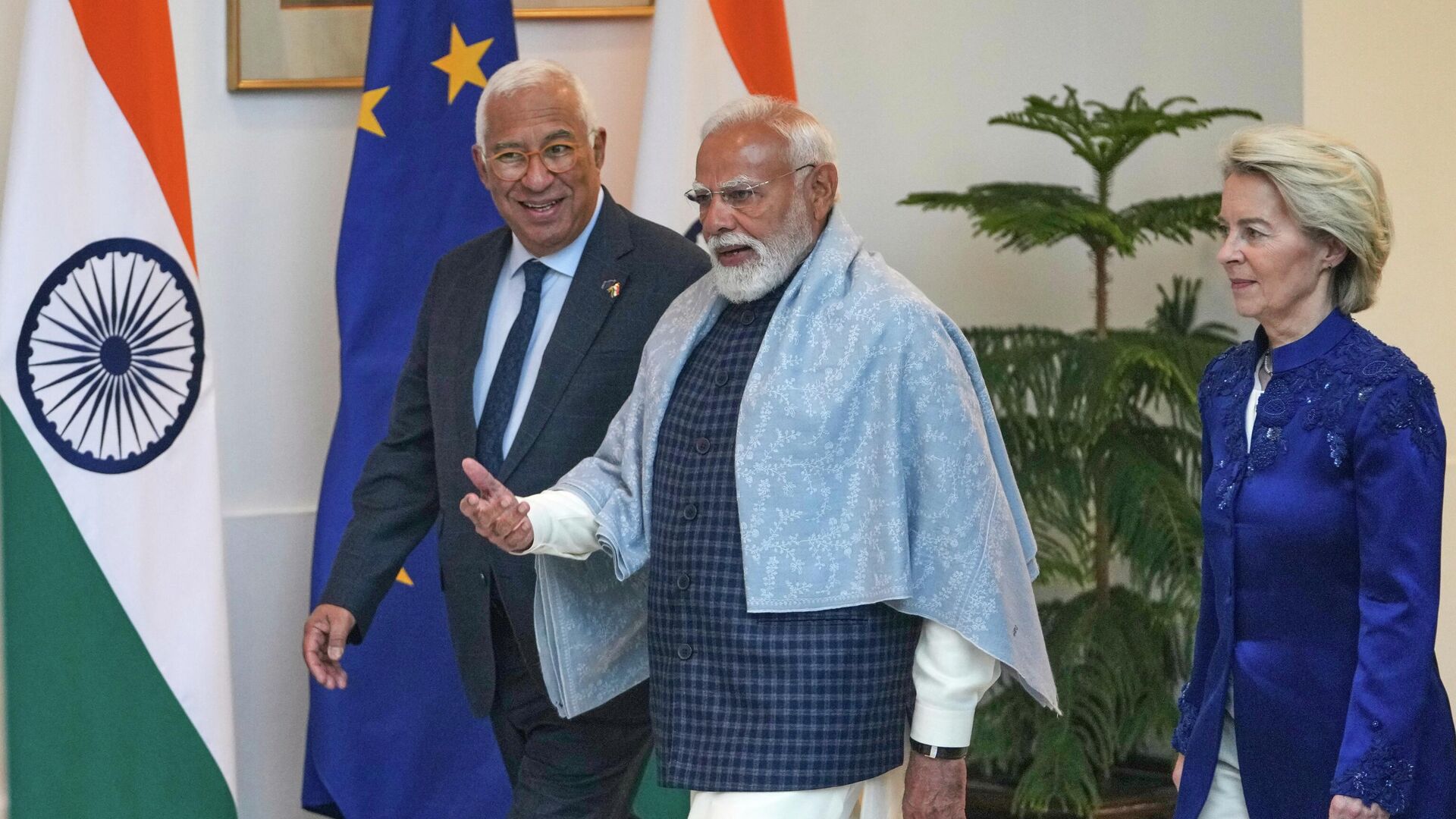 Церемония подписания, которая транслировалась на индийском телевидении, прошла в присутствии премьер-министра Индии Нарендры Моди, председателя Еврокомиссии Урсулы фон дер Ляйен и председателя Европейского Совета Антониу Кошты.