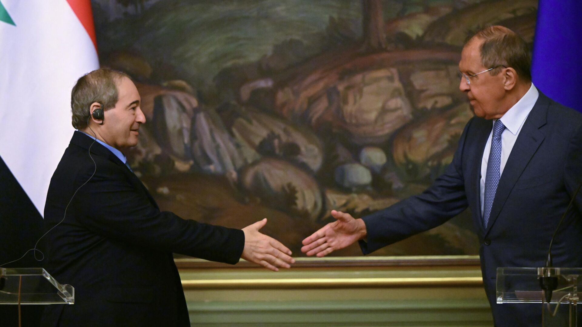 В ходе встречи в Москве глава МИД России Сергей Лавров и его коллега из Сирии Фейсал Микдад обсудили текущую ситуацию в Сирии и в регионе, продвижение мирного урегулирования конфликта, а также развитие двусторонних отношений.