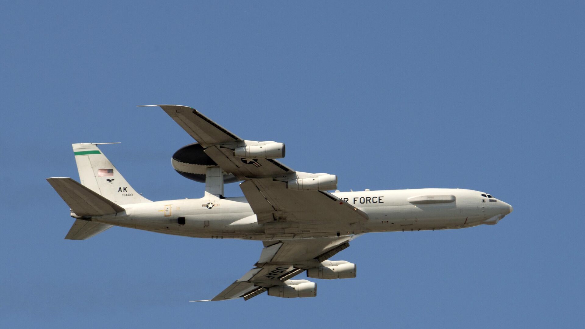Американский самолет Boeing E-3 Sentry ВВС США, известный как «Летающий радар», совершает патрулирование над территорией Саудовской Аравии в районе Персидского залива, как выяснило РИА Новости на основе анализа данных о полетах.