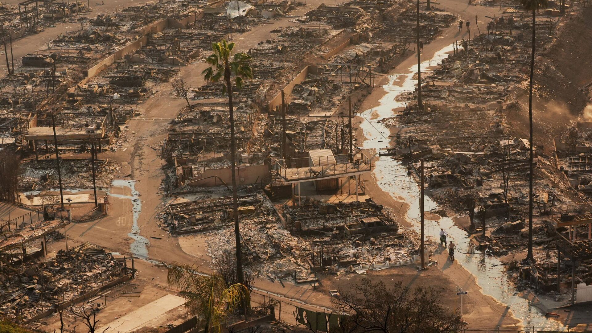 Общая площадь возгораний составляет 40 306 акров (163 квадратных километра), что больше, чем площадь Лихтенштейна (160 квадратных километров). Власти ввели обязательные эвакуации для жителей Лос-Анджелеса из-за масштабных лесных пожаров, начавшихся 7 января. Пожары признаны самыми крупными в истории штата, с уничтожением более 12,3 тысяч строений, включая дома знаменитостей, и погибшими по меньшей мере 24 человека. Ситуацию осложняют сильные ветры, временно препятствующие работе авиации, и неисправные гидранты в районе Палисейдс. Метеорологи отмечают, что быстрая распространение огня стало следствием сухой и ветреной погоды.