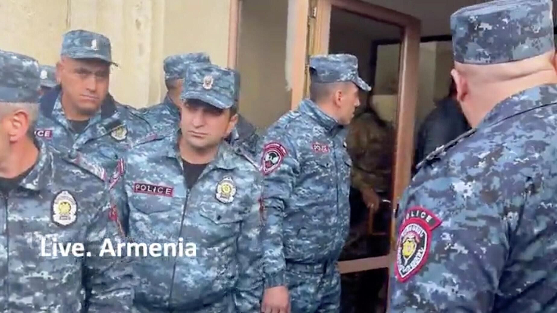 Власти полиции в Гюмри, Армения, оттеснили протестующих от здания мэрии, где находится задержанный оппозиционный мэр Вардан Гукасян.