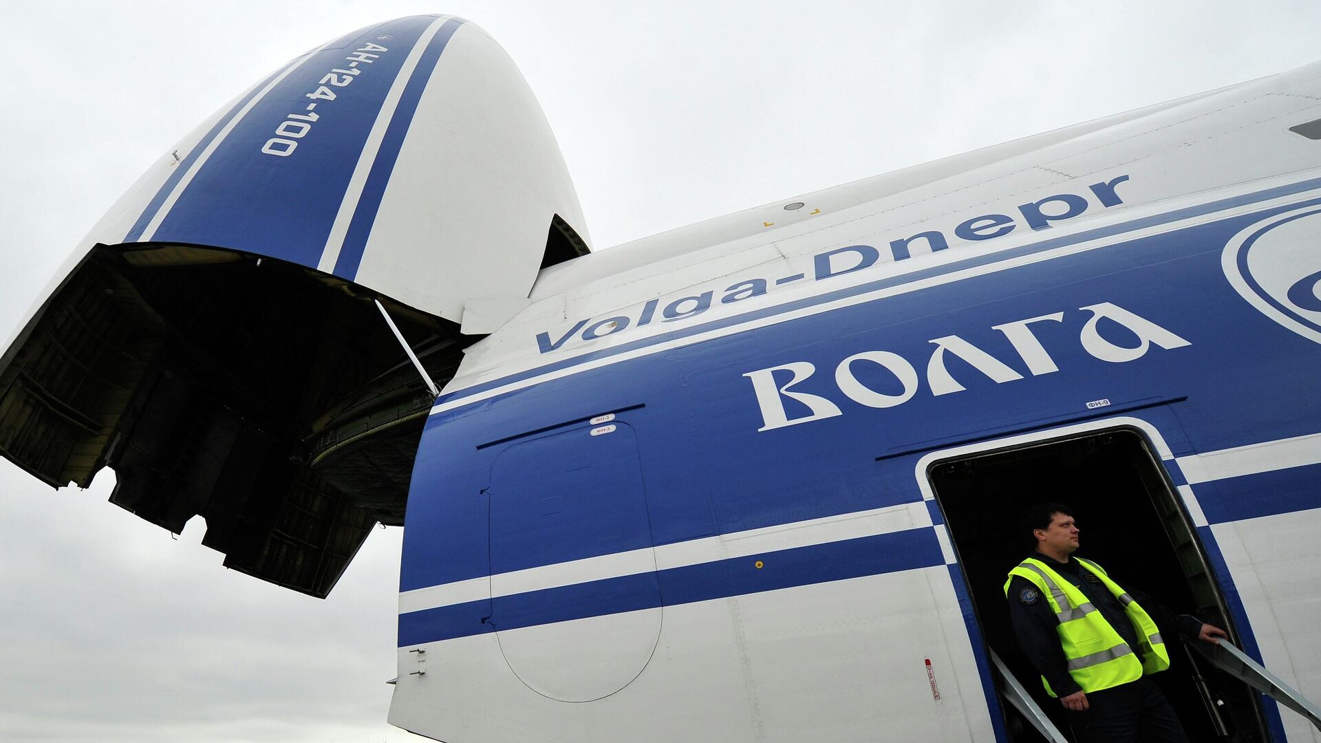 В феврале 2022 года Канада закрыла своё воздушное пространство для российских авиакомпаний. В результате Ан-124-100, перевозивший из Китая тестовые наборы для COVID-19 по заказу канадского правительства, оказался заблокирован в аэропорту Торонто. Весной 2023 года Оттава ввела санкции против «Волга-Днепр», а в июне тогдашний премьер-министр Джастин Трюдо заявил о намерении конфисковать самолёт и передать его Украине. В ответ российский МИД назвал эти действия бесстыдным воровством и пригрозил принять ответные меры.