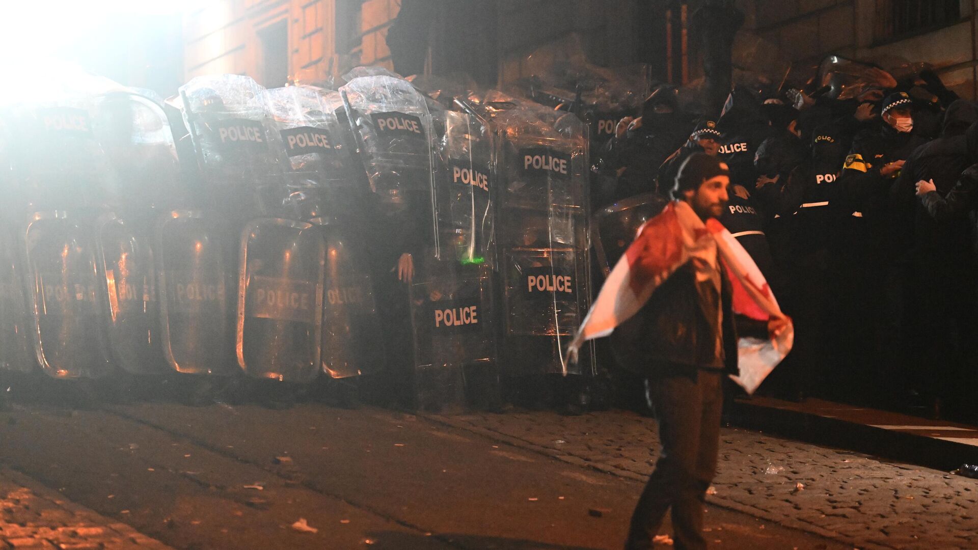 Днем сотрудники IT-сектора, недовольные отсутствием диалога властей Грузии по вопросу евроинтеграции, устроили шествие протеста по улицам столицы. Вечером они собрались у парламента, присоединяясь к другим недовольным. Эта акция уже 15 вечеров подряд. Серия протестов оппозиции началась 28 ноября после заявления премьер-министра Ираклия Кобахидзе о приостановке переговоров о членстве Грузии в Евросоюзе до 2028 года. Участники протеста использовали петарды, камни, бутылки, а также были найдены бутылки от "коктейлей Молотова". Силовики в ответ применили спецтехнику, включая водометы.