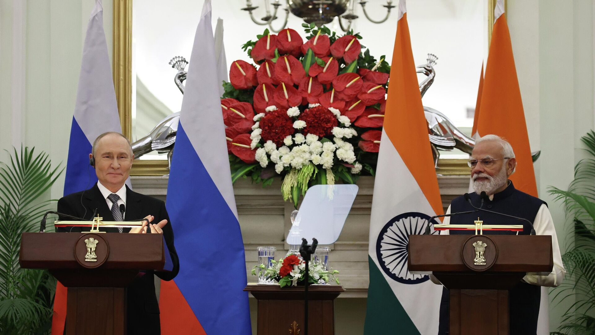 «Россия и Индия проводят независимую и самостоятельную внешнюю политику. Вместе с партнёрами из БРИКС, ШОС и других государств мирового большинства мы продвигаем формирование более справедливого и демократического многополярного миропорядка», — отметил глава российского государства по итогам российско-индийских переговоров.
